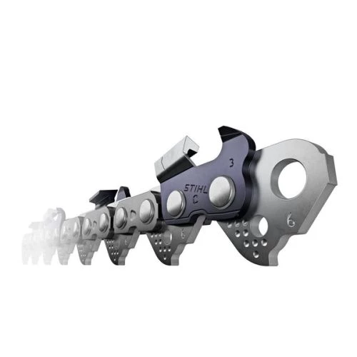 La chaîne de tronçonneuse STIHL Rapid Hexa est basée sur le système breveté et exclusif STIHL HEXA dont les extrémités des gouges sont en formes de V. Cette chaîne offre +10% de performance de coupe par rapport à la chaîne “Rapid Super” grâce à son profil de gouge plus étroit offrant plus de rendement et plus de durabilité dans le temps. L’affûtage est également plus rapide et plus simple avec des meilleurs résultats grâce au système HEXA. Idéale pour la foresterie professionnelle et la récolte du bois.
