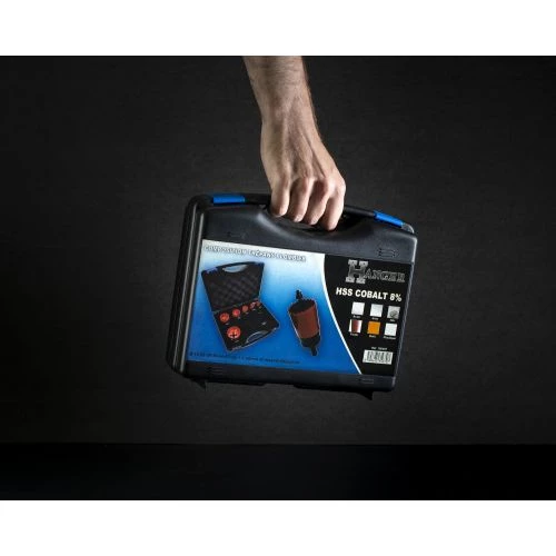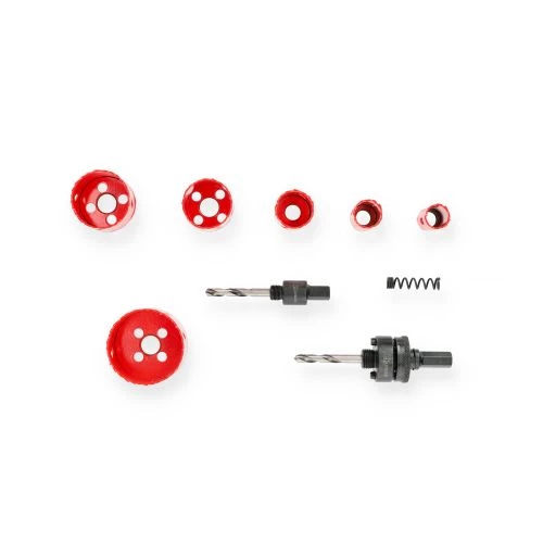 - 6 trépans de diamètres : 19 – 22 – 29 – 38 – 44 – 57 mm.