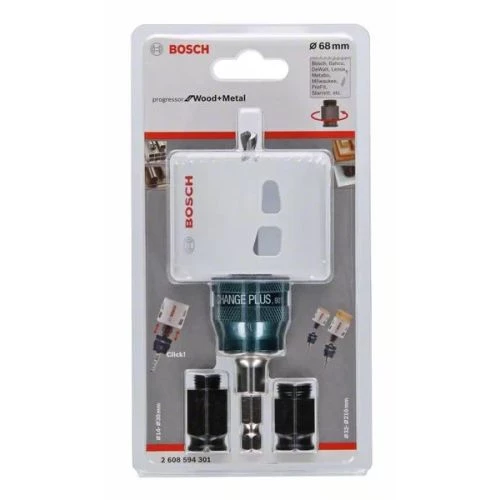 Ce kit de démarrage Progressor for Wood and Metal de la marque Bosch sert à mettre à niveau toutes les scies trépans standards vers le système Power Change Plus. Elle convient à toutes les perceuses-visseuses filaires et sans fil.