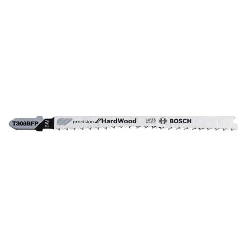 La lame de scie sauteuse T 308 BFP Precision for Hard Wood est conçue pour la réalisation de découpes rectilignes précises et très nettes dans le bois. Elle assure des découpes sans bavure et nettes à des angles grâce à l’épaisseur de la lame et la denture à corps effilé conique. Cet outil est idéal pour découper les matériaux de menuiserie abrasifs et les bois durs grâce à la combinaison Bimétal de la denture et du corps de la lame. En outre, il convient pour la découpe des matériaux solides dérivés du bois d’une épaisseur de 5 jusqu’à 50 mm. Cette lame de scie sauteuse T 308 BFP est faite pour scies sauteuses avec systèmes de fixation en T.