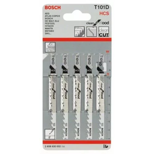 La lame de scie sauteuse T 101 D Clean for Wood possède une denture à corps effilé-conique pour favoriser une découpe nette et précise. En plus, la lame en acier à haute teneur en carbone permet la découpe dans les matériaux de menuiserie non abrasifs et dans le bois tendre. La denture à grand pas progressif de 4 à 5,2 mm est destinée pour la découpe de matériaux dérivés du bois de 10 à 45 mm d’épaisseur.