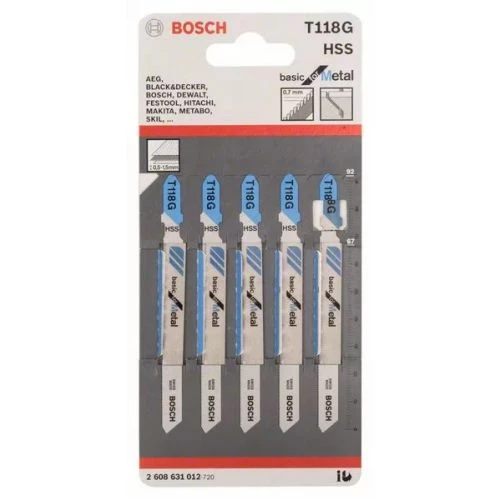 La lame de scie sauteuse T 118 G Basic for Metal possède une denture ondulée et fraisée ce qui permet d’effectuer des découpes sans exigence particulière. Cet outil est idéal pour l’application dans les découpes rectilignes dans le métal. En plus, la lame en acier trempé peut être utilisée pour la découpe des tôles standards non perforées grâce à sa coupe rapide de haute qualité. La lame de scie sauteuse T 118 G permet la découpe de tôles d’une épaisseur de 0,5 à 1,5 mm avec sa denture à pas très fin de 0,7 mm. Cette lame est compatible avec les scies sauteuses avec systèmes de fixation en T.