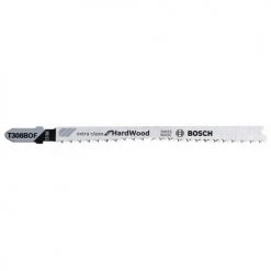 La lame de scie sauteuse T 308 BOF Extra-Clean for Hard Wood est destinée pour effectuer des découpes arrondies très nettes et sans bavures dans le bois. Grâce à sa denture à corps effilé-conique et affûtée avec précision, elle permet des découpes sans éclats des surfaces inférieures et supérieures. Elle favorise la découpe des matériaux comme les bois durs et les matériaux de menuiserie abrasifs grâce à la composition Bimétal de la denture progressive en acier trempé à coupe rapide (HSS) et du corps en acier à haute teneur en carbone (HCS) flexible. En outre, la lame possède une denture à pas fin de 2,2 mm et une géométrie des dents taillée et affutée ce qui permettant la découpe de matériaux solides dérivés du bois de 5 à 50 mm d’épaisseur. Elle convient avec les scies sauteuses avec systèmes de fixation en T.