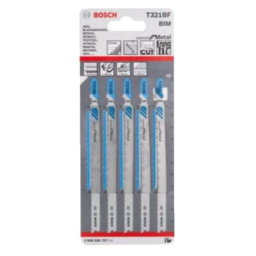 Les lames de scie sauteuse Bosch T 321 BF Speed for Metal bénéficient d’un corps rectifié breveté ainsi qu’un trait de coupe fin offrant une vitesse de coupe inégalée. La denture agressive et robuste à géométrie ondulée fraisée brevetée permet d’augmenter au maximum la vitesse de coupe. Les lames sont faites de structure en bimétal à denture progressive en acier trempé à coupe rapide (HSS) et d’un corps en acier à haute teneur en carbone (HCS) très flexible garantissant leur résistante à la rupture.